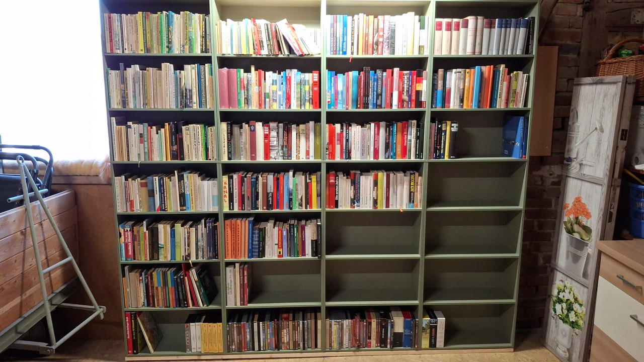 Diese Woche daheim so viele Bücher aus der elterlichen Bibliothek in die Scheune verfrachtet, um die Neuzugänge der meinigen drinnen im Haus unterzubringen. Jetzt ist Schluss mit lustig, Buchkaufstopp bis zum 60., sollte ich diesen erleben.